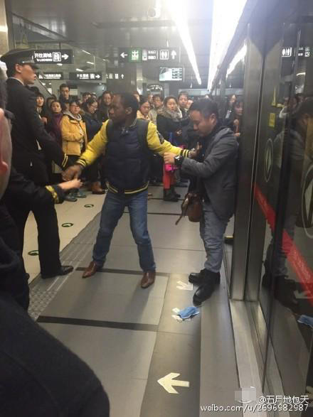 一名地铁工作人员表示,事发时正值高峰期,候车旅客较多,列车也比较密集。工作人员赶到时,两名打架男子已被劝走,只有一名黑人小伙在现场,据候车乘客反映,是黑人小伙子将两人拉开。