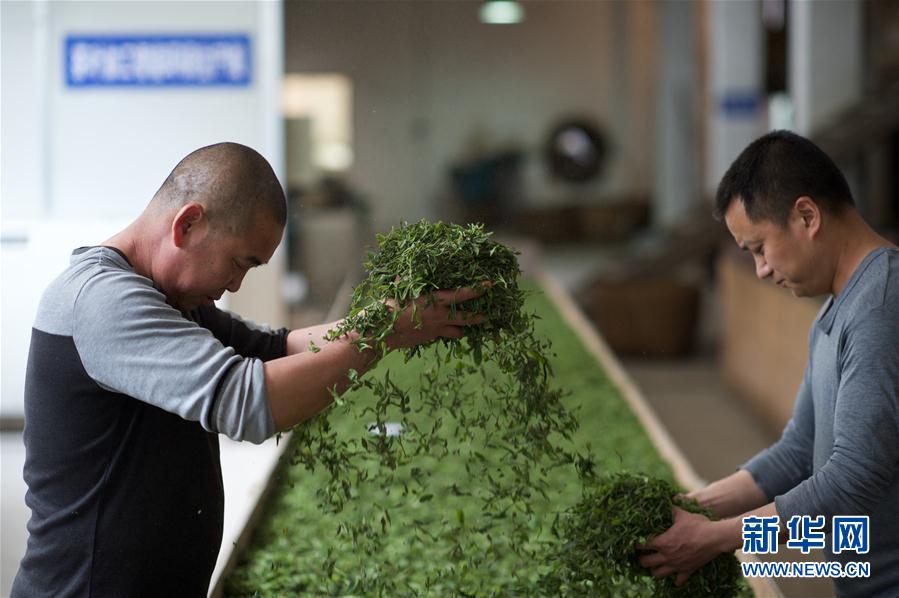 武夷山一家制茶企业员工在晒青制茶(4月13日摄)。(新华社记者姜克红 摄)