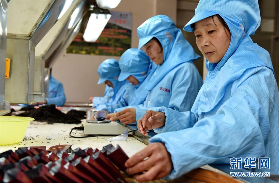 武夷山桐木村一家茶业有限公司的工作人员在包装红茶(4月15日摄)。(新华社记者 张国俊摄)