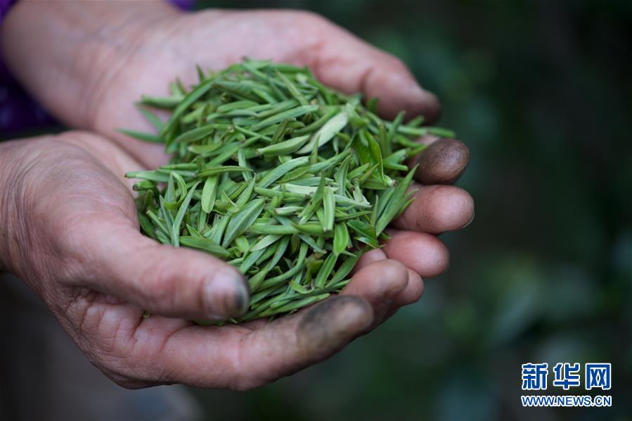 武夷山桐木村茶农在展示生产红茶“金骏眉”用的芽尖原料(4月15日摄)。(新华社记者 张国俊摄)