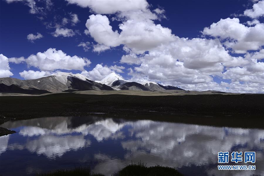 这是青海省海西蒙古族藏族自治州境内玉珠峰脚下的一处湿地(2016年8月21日摄)。