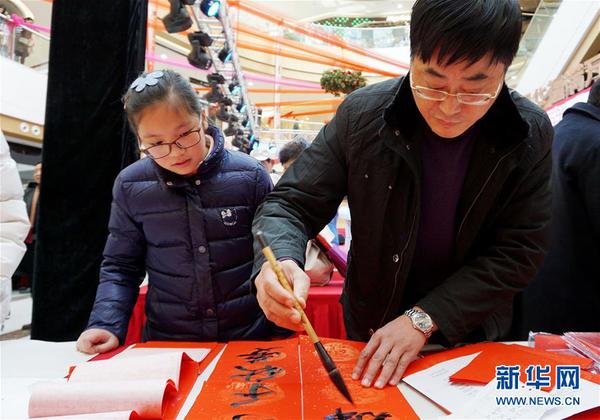 当日,“春贺新时代联颂大中华”2018年互邦杯春联征集活动颁奖仪式暨知名书法家送春联进社区活动在上海闵行一家商场举行,书法家和书法爱好者现场书写春联征集活动中获奖的原创春联作品并赠送给社区居民。