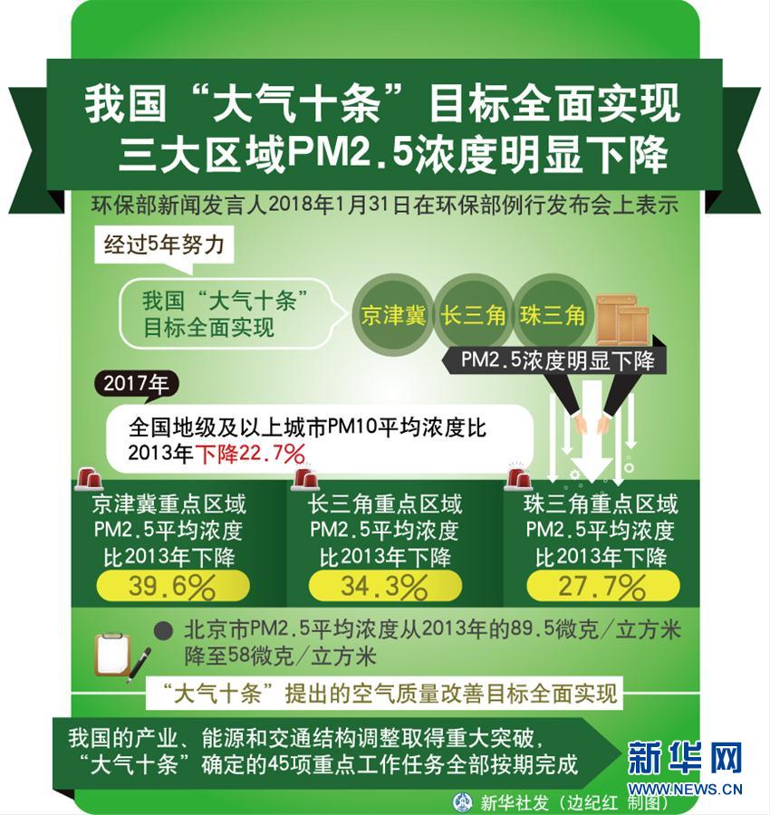 我国“大气十条”目标全面实现 三大区域PM2.5浓度明显下降(资料图表)新华社发(边纪红 制图)