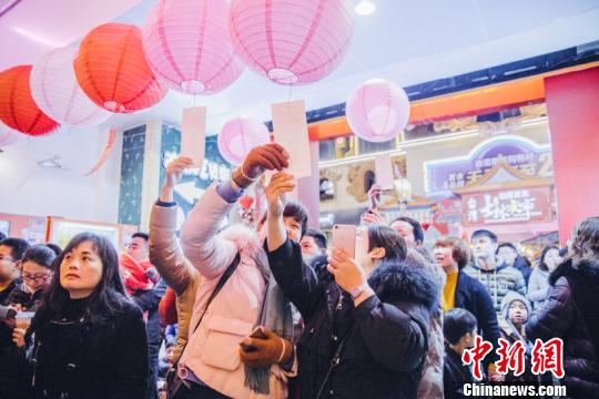 取张灯谜猜一猜,讨个好彩头。 刘顺 摄