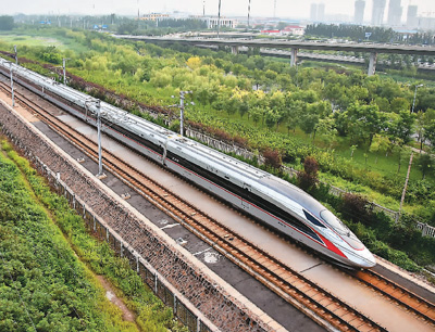 从北京南开往天津的C2001次“复兴号”标准动车组。 新华社发