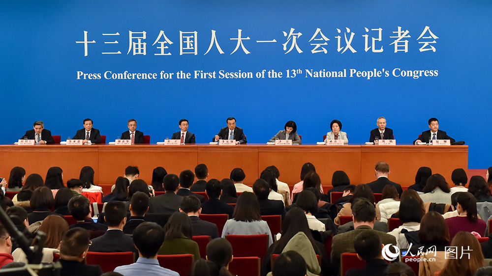 3月20日上午,十三届全国人大一次会议闭幕后,国务院总理李克强和副总理韩正、孙春兰、胡春华、刘鹤在人民大会堂三楼金色大厅与中外记者见面,并回答记者提问。