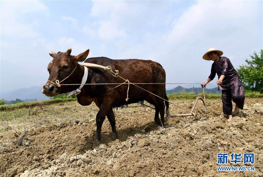 4月30日,在贵州省榕江县古州镇三盘村,村民在开犁耕田。当日,贵州省黔东南苗族侗族自治州榕江县古州镇三盘村举行开犁节,村民们参加犁田、耙田、稻田捉鱼等传统农事活动。 新华社发(张晖 摄)