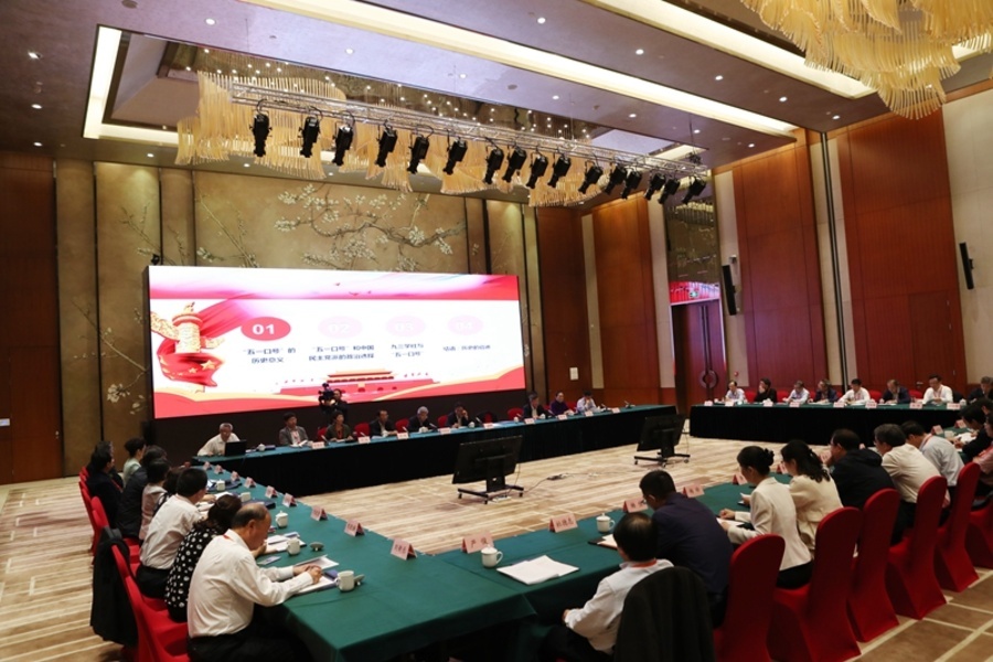 全国政协副主席、九三学社中央常务副主席邵鸿作《牢记初心 继往开来 ——纪念“五一口号”发布七十周年之际重温社史的思考》专题报告