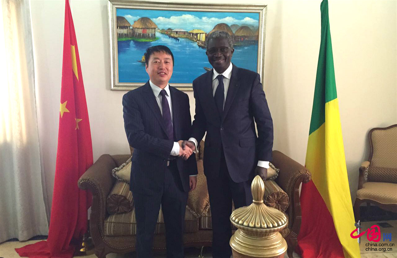 程志刚(图左)与贝宁共和国驻华大使西蒙▪皮埃尔▪阿多韦兰德。