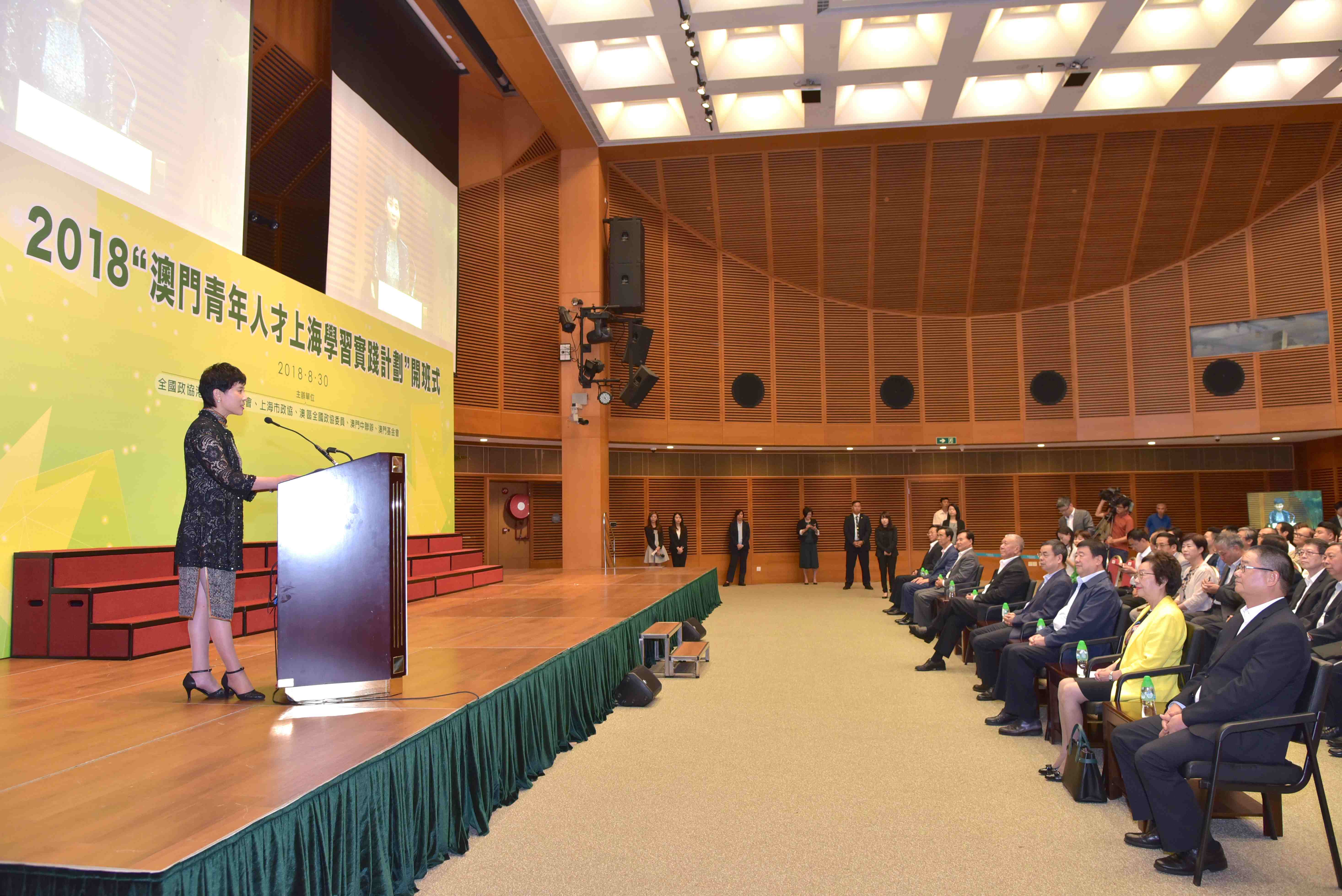 中国网9月6日讯 全国政协港澳台侨委员会消息,8月30日下午,2018年“澳门青年人才上海学习实践计划”开班式在澳门科学馆会议中心举行。全国政协副主席何厚铧,港澳台侨委员会副主任吕虹(驻会)、贺定一,全国政协常委廖泽云、梁华,澳门中联办副主任张荣顺,上海市政协副主席徐逸波等出席会议。