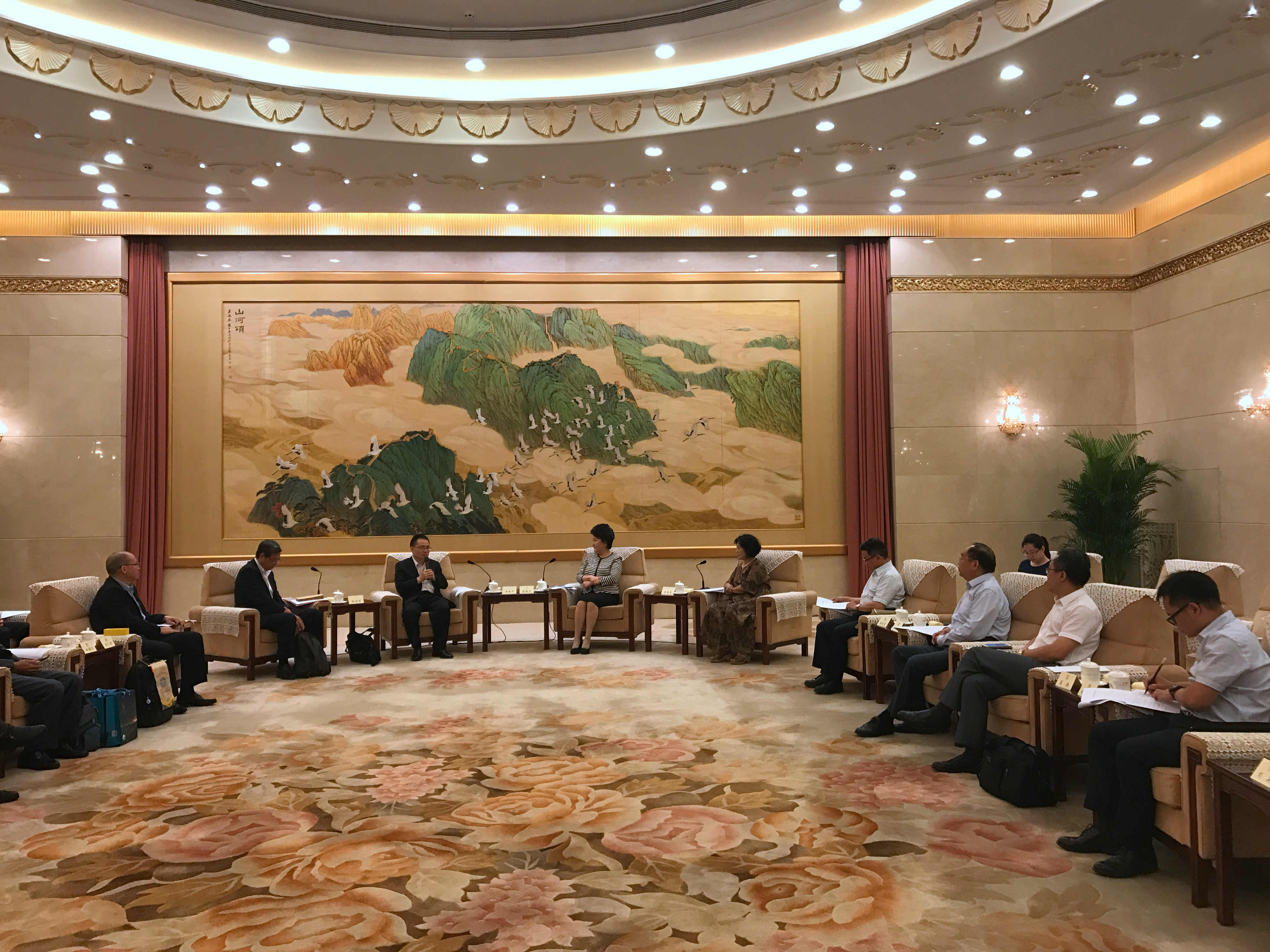 中国网讯 全国政协港澳台侨委员会办公室消息,9月4日下午,全国政协港澳台侨委员会副主任裘援平在机关会见以中华金门同乡会理事长、金马澎离岛联盟召集人黄献平为团长的金马澎离岛联盟北京参访团一行。