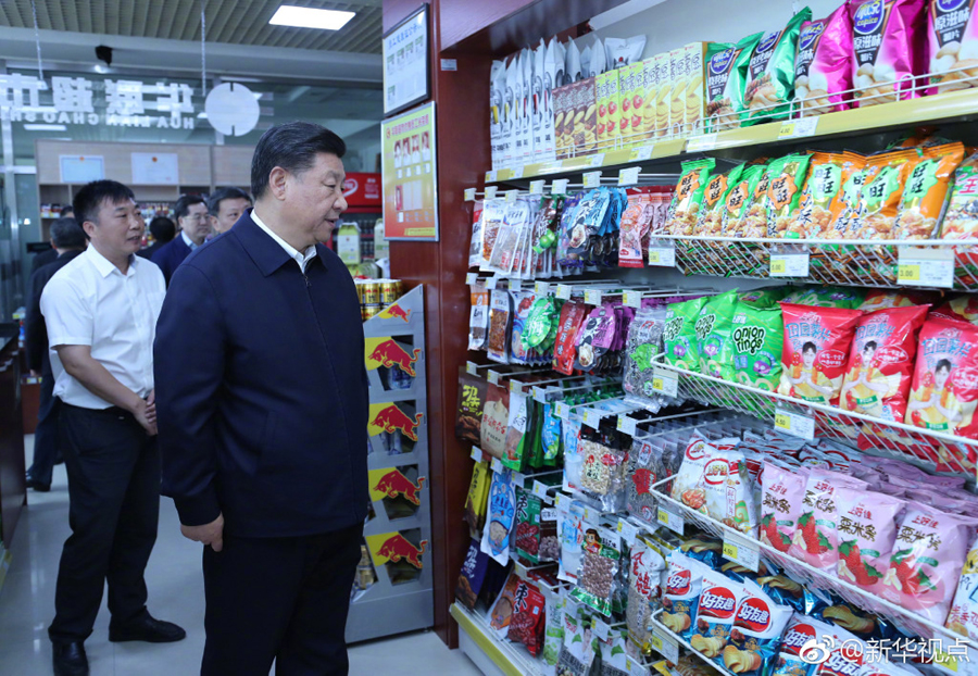 结束在辽宁抚顺的考察活动后,28日中午,习近平总书记乘车返回沈阳。中途在服务区短暂休息时,习近平特意走进旁边超市,仔细察看、询问商品价格和品质,还掏钱买了一袋江米条、一罐酱香什锦菜、两盒沟帮子熏鸡,一共花了131元。(文字记者张晓松、摄影记者鞠鹏)