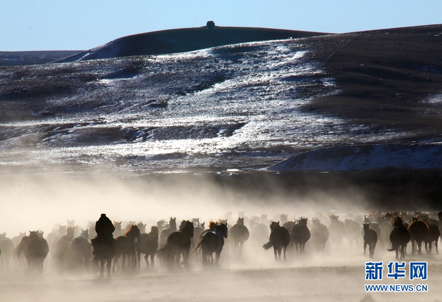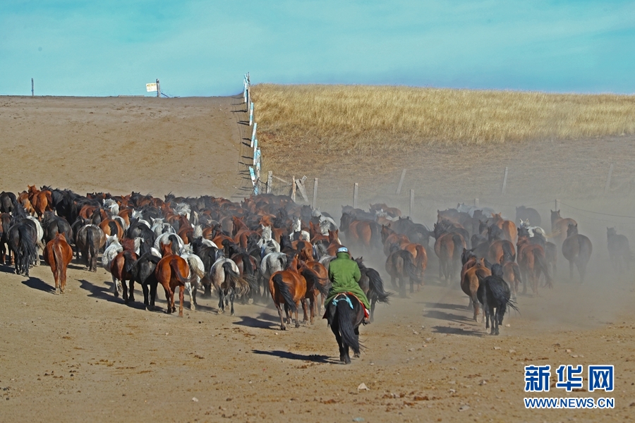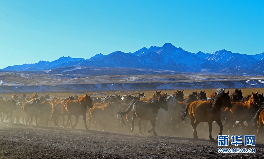 初冬,山丹军马场现“万马奔腾”场景,十分壮观。山丹军马场位于甘肃河西走廊中部、祁连山北麓,这里地势平坦、水草丰茂,是马匹繁衍、生长的理想场所,也是我国历代最大的良马基地,史志典故多有记载,距今已有两千多年历史。新华网发(成林 摄)