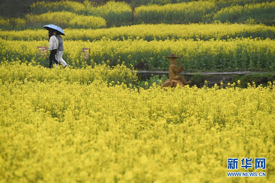 3月28日,游客从黟县西递的油菜花田间经过。近日,安徽省黄山市黟县的油菜花迎来盛花期。金黄的油菜花与屋舍、道路等形成一幅幅美丽的乡村画卷,引人入胜。 新华社记者张端摄