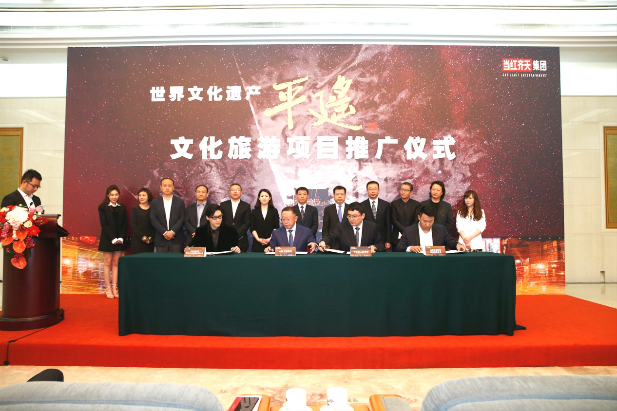 晋中市政协副主席魏元平,平遥县政府县长石勇等市、县领导,联想创投总裁贺志强、山西省文化旅游投资控股集团董事长王文保、总经理高建光、当红齐天国际文化发展集团联合创始人、CEO齐笑等相关企业负责人参加签约仪式。