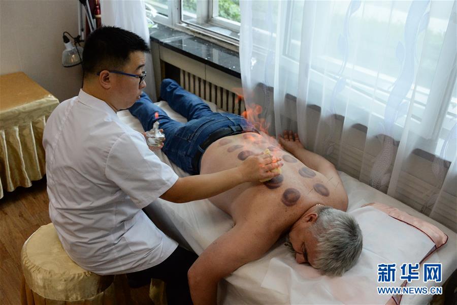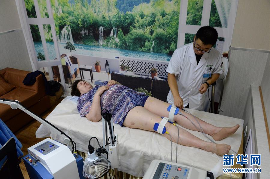 8月10日,在绥芬河市人民医院,一名俄罗斯患者在接受针灸治疗。近年来,中医治疗得到越来越多俄罗斯患者的认可。在位于中俄边境的黑龙江省绥芬河市,前来就诊的俄罗斯患者逐年递增。新华社发(谢剑飞摄)