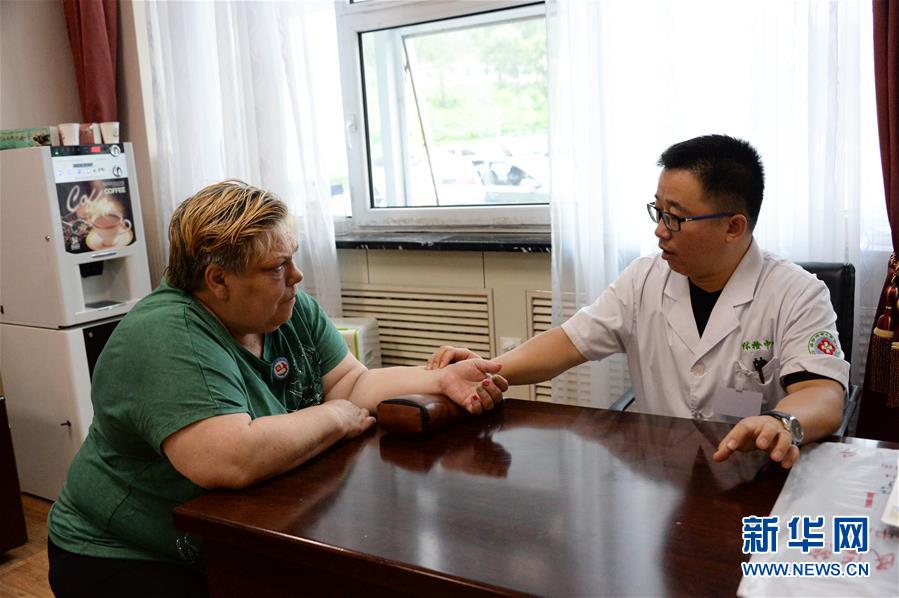 8月10日,在绥芬河市人民医院,一名俄罗斯患者在接受中医治疗。新华社记者 董宝森 摄