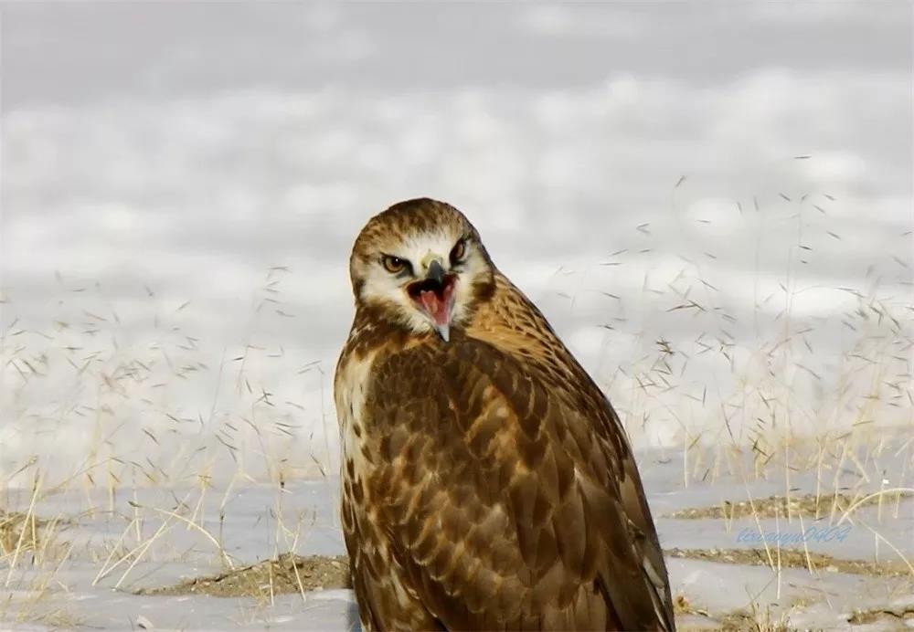 点评:作者敏锐地捕捉到了猛禽怒目圆睁、张开尖喙的凶悍表情,羽翼仿佛战袍,其形象具有一定的拟人效果。照片具有趣味性和科普色彩,如果改换用更长焦距的镜头拍摄,聚焦于猛禽的局部表情,充分表现“警告”的情绪细节,效果会更好。