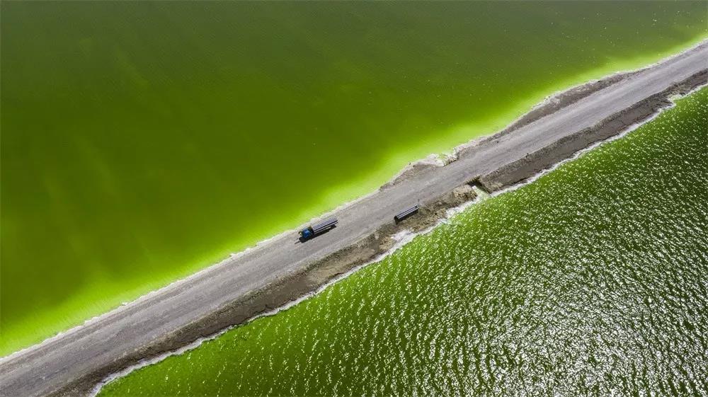 点评:这幅照片以特写视角,清晰地呈现了“晒盐”这一生产方式,由于水分不断蒸发,湖水具有特殊的质感,盐粒在水中聚集,固态盐呼之欲出。通过读图,让观者对格尔木地区盐田的认知得到提升,但照片的摄影审美属性有待加强。