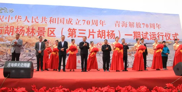 9月19日,格尔木市胡杨林景区(第三片胡杨)一期试运行启动仪式在该景区举行,胡杨林景区一期项目的建设和试运行是格尔木市打造全域旅游示范市和南丝绸之路上重要旅游节点城市的坚实一步,对带动格尔木市旅游业推动经济社会发展具有重要意义。格尔木市委常委、宣传部长邹晟,市人大常委会副主任辛向东,市政府副市长李晓兵出席启动仪式。