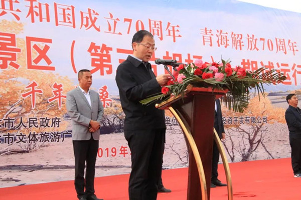 邹晟在讲话中指出,格尔木地理环境独特、自然风光优美、文化旅游资源得天独厚,是世界顶级的青藏自驾游旅游线上的重要区段,发展文化旅游产业优势潜力巨大。胡杨林景区(第三片胡杨)一期的试运行只是开端,今后的发展任务十分艰巨,充满挑战,要不断完善景区功能,在试运行中积累经验,为正式开园做好充分准备。相关部门要以胡杨林景区(第三片胡杨)一期试运行为新起点,不断强化推动文旅融合发展的思路和举措,坚持走高质量发展的兴旅道路,找到文旅融合发展的比较优势,以文促旅、以旅彰文,推动文旅融合向纵深发展。