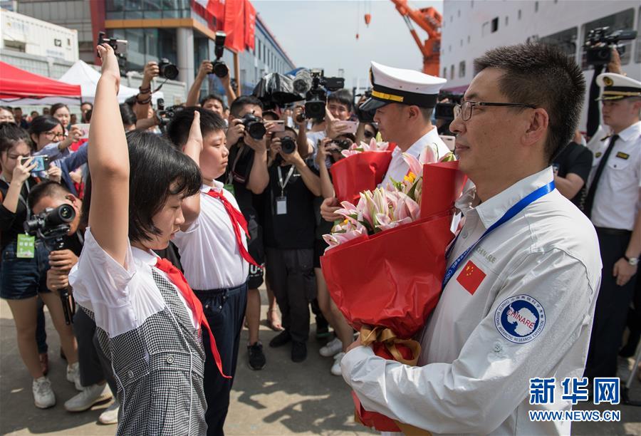 10月13日,极地科学考察破冰船“雪龙2”号抵达深圳蛇口太子湾邮轮母港,船员和科考队员等向码头挥手致意。 当日,我国首艘自主建造的极地科学考察破冰船“雪龙2”号抵达深圳。10月15日下午,“雪龙2”号将首航出征南极,与“雪龙”号共同执行中国第36次南极科学考察任务。 新华社记者毛思倩摄
