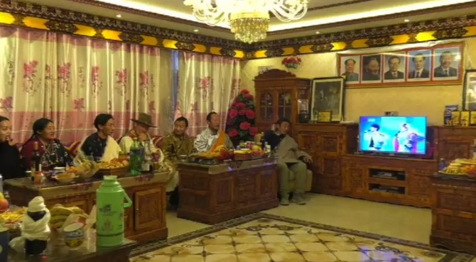 电视里正在播放着藏历新年晚会,大家边看节目边谈起一年的收获,讨论着自己喜欢的歌手以及今年又有哪些出色的表演。