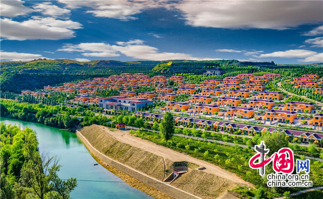 榆阳区古塔镇赵家峁村新建的美丽新居和设施种养殖基地。