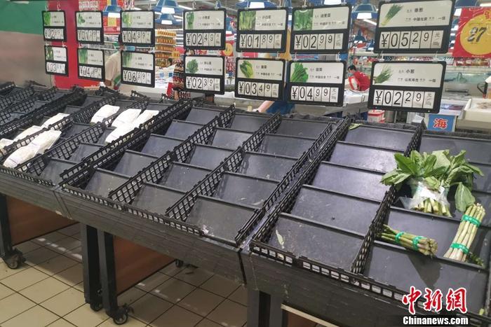 北京市丰台区新村街道欧尚超市多个蔬菜品种已售空。 谢艺观 摄