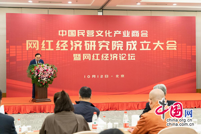 中国网北京10月13日讯(记者 李培刚) 10月12日,中国民营文化产业商会网红经济研究院成立大会暨网红经济论坛在京召开。全国工商联原常务副主席、中华文化交流与合作促进会会长孙安民,北京市人大常委会原副主任赵凤山,全国工商联会员部副部长刘建出席大会。