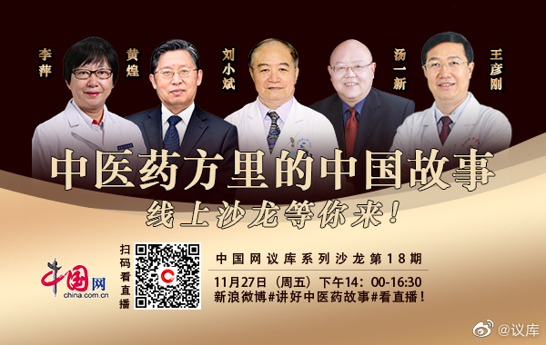 中国网11月30日北京讯 助孕经方温经汤、防风通圣散方、强肌健力饮、栀子豉汤、滋脾调气通便汤……这些中医药方你可曾听过?27日下午,由中国网政协频道、中国网议库平台主办的中国网议库系列沙龙第18期“中医药方里的中国故事”线上沙龙召开,邀请北京市政协委员、中医药界专家分享中医药方里的小故事,以小见大,展现“中国药方”里的中国文化、中国智慧。