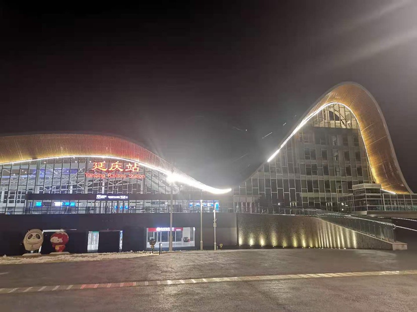 京张高铁延庆支线自京张高铁八达岭西线路所引出,终点至延庆站。延庆支线线路全长9.33公里,其中桥梁长度2.6公里,设计时速160公里,设延庆站1座车站。延庆站换乘中心于2018年12月正式开工,位于原延庆站北侧,集高铁、市郊铁路、公交、出租车、自行车等多种交通方式于一体,于今年7月建设完毕,在京张高铁延庆支线开通的同时,北京市郊铁路S2线也利用新建站房恢复延庆站运营。