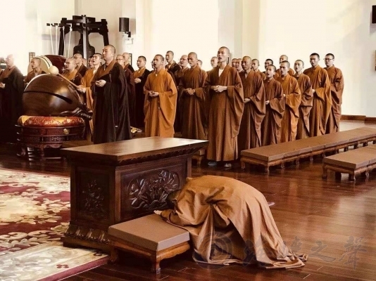 图为佛学院僧众日常功课(图片来自媒体同行)