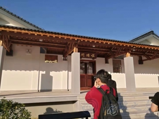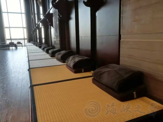 走进浙江佛学院山门,两岸的媒体人在院落右边的墙壁上,看到了“”两岸交流基地“的铜匾。据介绍,早在2014年,浙江佛学院与台湾佛光大学就签订了校际交流合作框架协议,甬台两地僧众将共享资源、共同参禅悟道。