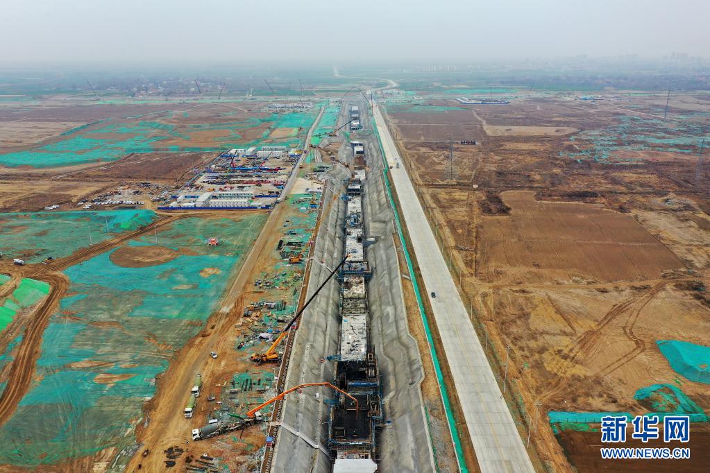 这是3月18日拍摄的雄安新区启动区地下管廊建设现场(无人机照片)。新华社记者 牟宇 摄