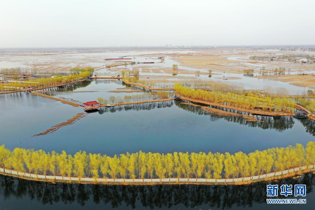这是3月16日拍摄的白洋淀风光(无人机照片)。新华社记者 牟宇 摄