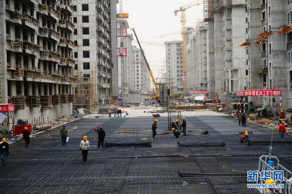 3月17日,工人在雄安新区容东片区安置房项目建设现场施工。新华社记者 金皓原 摄