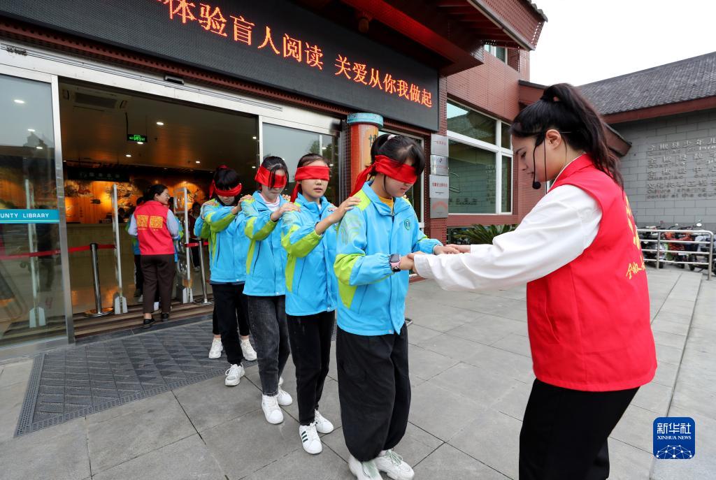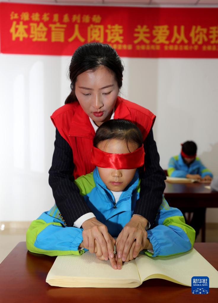 10月13日,安徽省全椒县图书馆新时代文明实践中心开展“体验盲人阅读 关爱从你我做起”主题活动,邀请小读者了解护眼知识、体验盲人生活,培养学生关爱盲人、帮助盲人的意识,迎接国际盲人节。新华社发(沈果 摄)