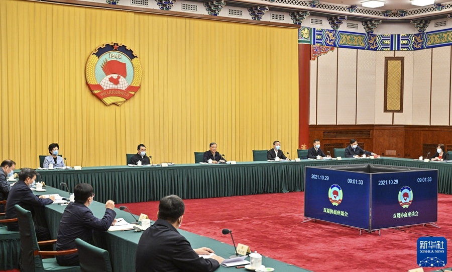 10月29日,十三届全国政协第55次双周协商座谈会在北京召开。中共中央政治局常委、全国政协主席汪洋主持会议。新华社记者 饶爱民 摄