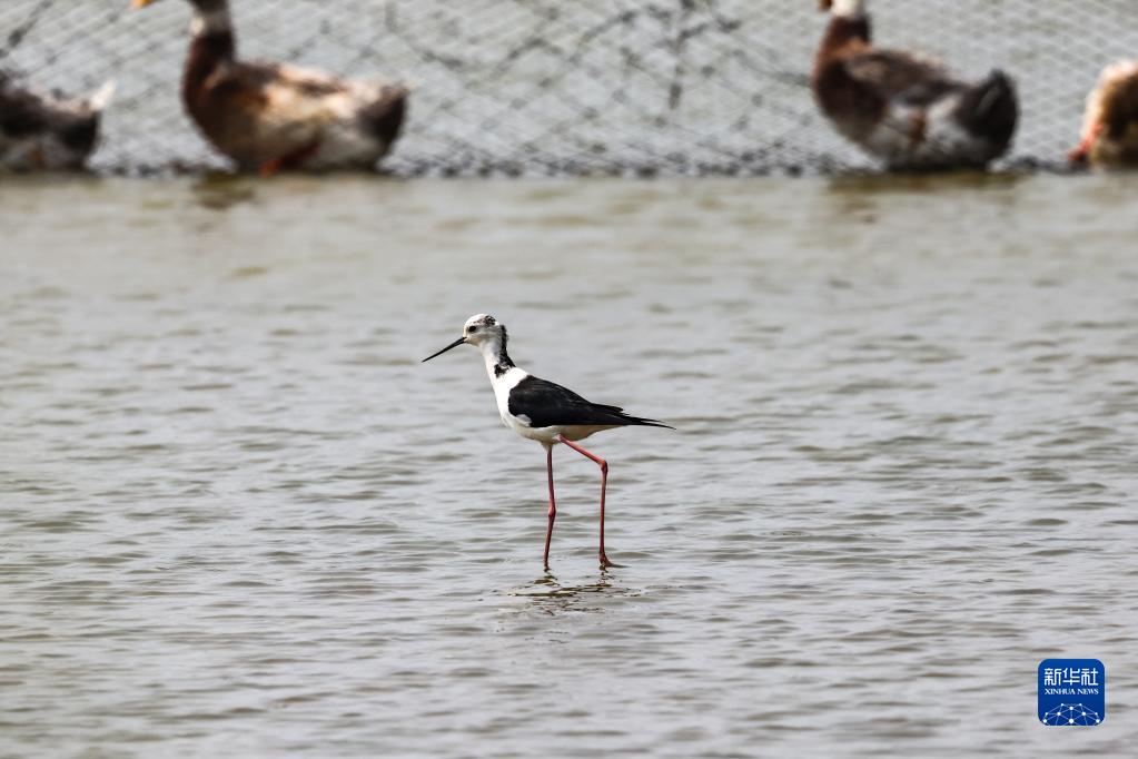 这是4月27日在海南东寨港国家级自然保护区内拍摄的黑翅长脚鹬。