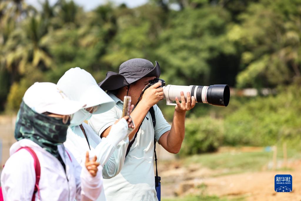 4月27日,海南东寨港国家级自然保护区内的工作人员和志愿者在进行鸟类多样性监测。