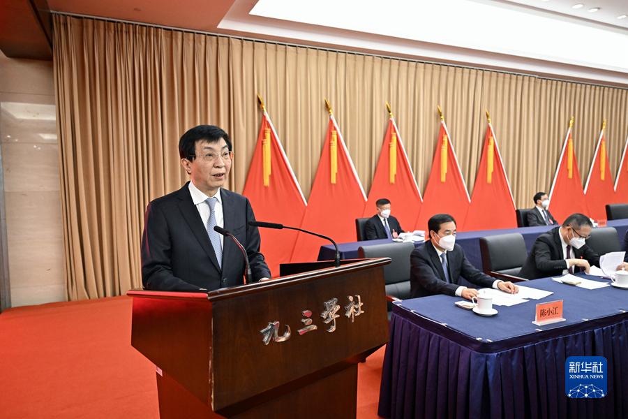 12月19日,九三学社第十二次全国代表大会在北京开幕。中共中央政治局常委王沪宁出席开幕会并代表中共中央致贺词。新华社记者 殷博古 摄