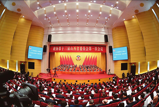 1月11日,中国人民政治协商会议第十三届山西省委员会第一次会议在太原隆重开幕。图为大会会场。 本报记者孙荣祥摄