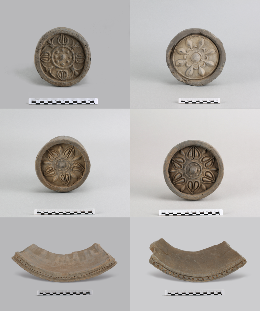 古城村2号寺庙址出土的瓦当、檐头板瓦。吉林省文物考古研究所供图