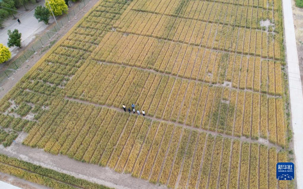 这是5月25日拍摄的河北沧州渤海新区黄骅市中捷产业园区农科所旱碱麦繁种试验田(无人机照片)。