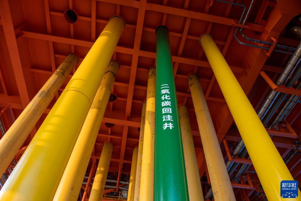 5月31日拍摄的中国海油恩平15-1原油钻采平台上的二氧化碳回注井。