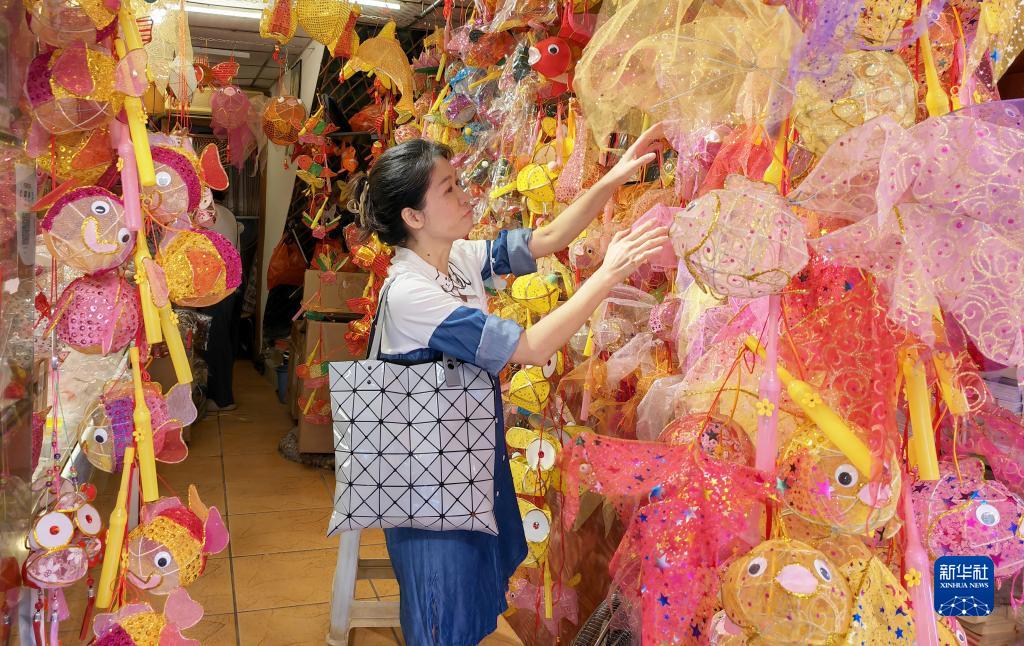 随着中秋佳节日益临近,在广州市光孝路一带,商铺挂满了各式传统手工灯笼,吸引不少市民前来观赏选购。