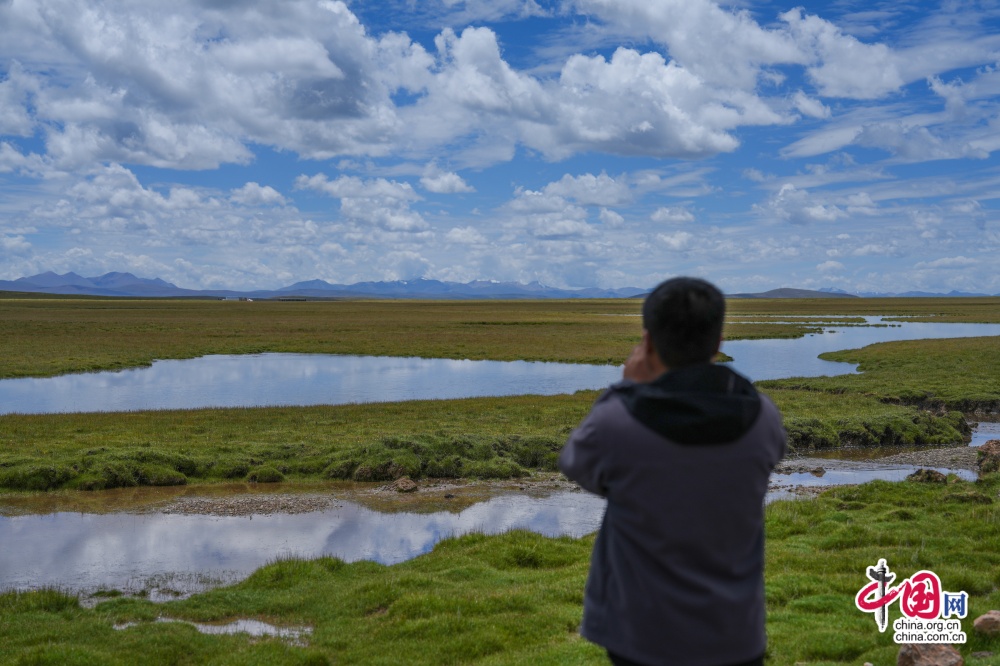 ▲日前,2025澜湄国际影像周“杂多线”采风组成员在查旦湿地采风拍摄。中国网记者 郑伟 摄