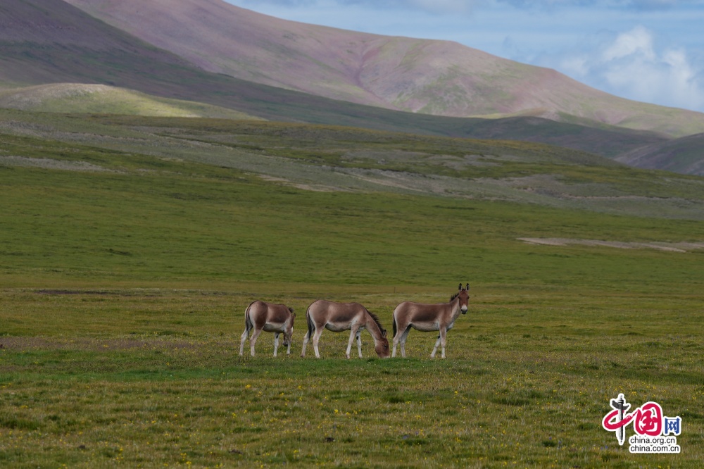 ▲345国道杂多县至查旦湿地段的藏野驴。中国网记者 郑伟 摄